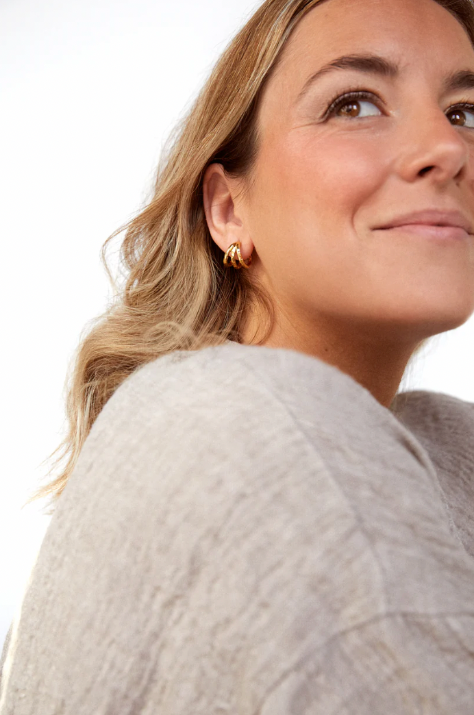 Estos pendientes de Dos Primeras son una pieza moderna y sofisticada, perfecta para realzar cualquier look con un toque elegante. Están elaborados con la técnica martelé, que les da una textura única y llamativa. Inspirados en las calas de Mallorca, combinan perlas asimétricas y cristales que evocan la luz y frescura de los veranos mediterráneos.